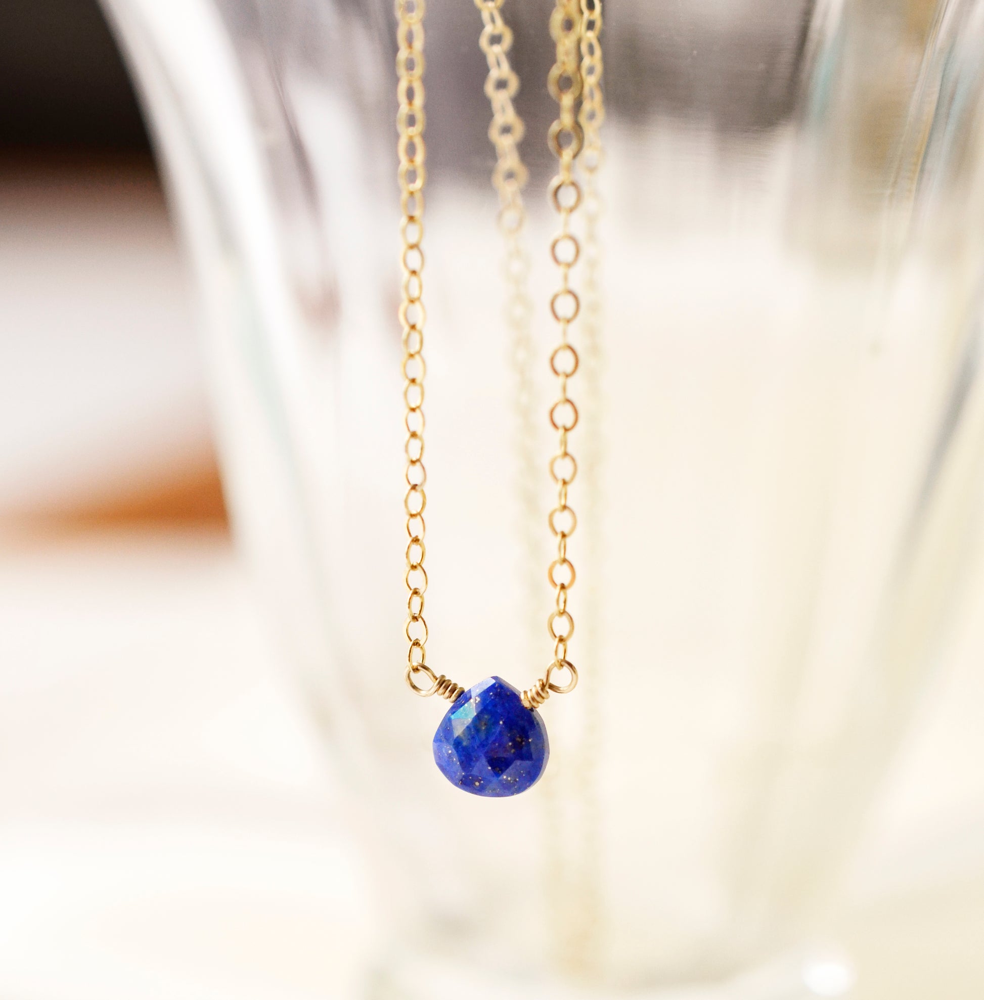 Own a piece of ancient history with this natural Lapis Lazuli necklace, handmade in Sterling Silver or 14k Gold Filled.