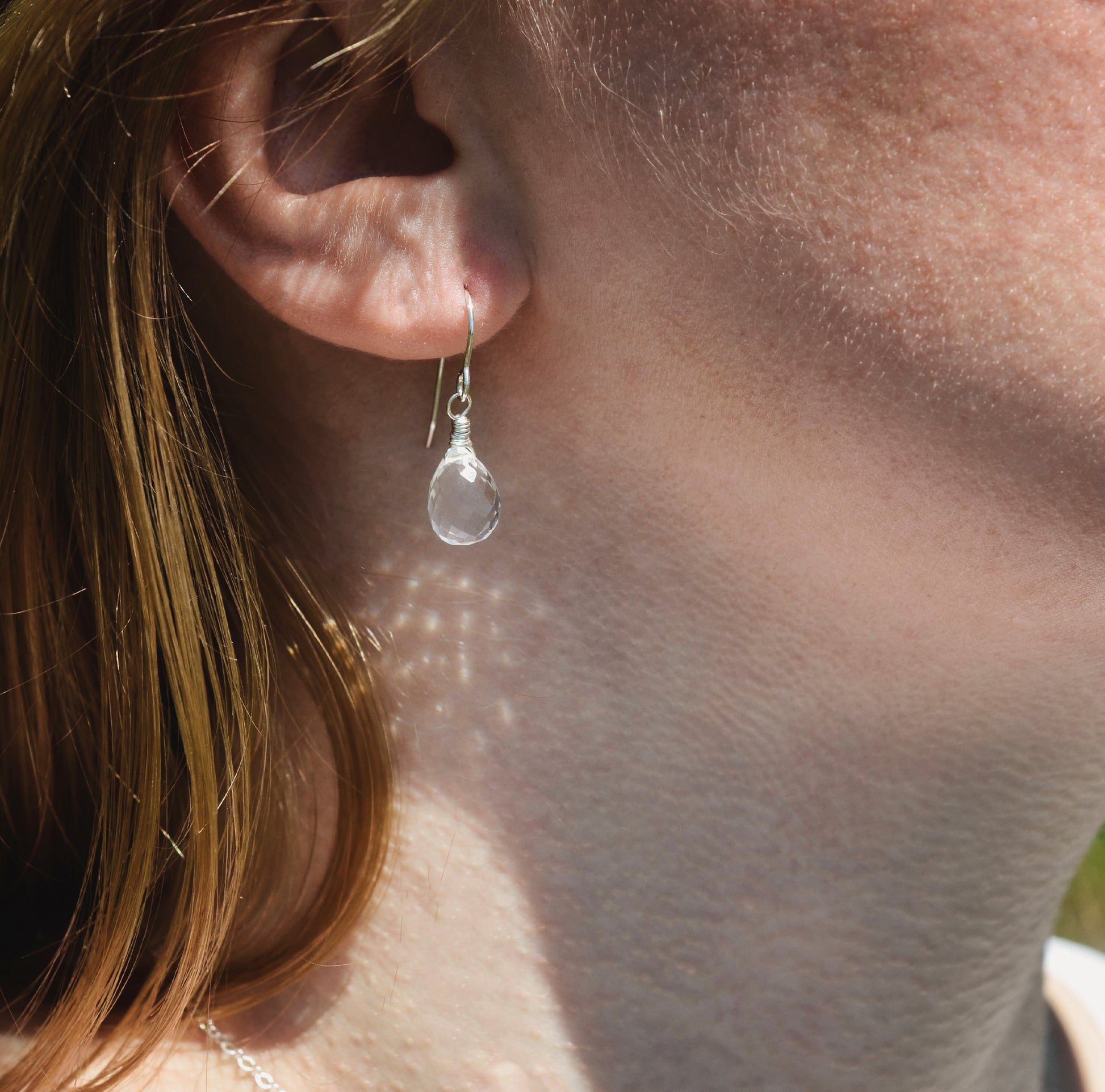 Why settle for ordinary earrings when you could get a pair that's as versatile as you are? These earrings are handmade with faceted teardrops of genuine clear Quartz. The gemstones are "au naturel", so expect some pretty natural inclusions. We offer a choice of sterling silver or 14k gold-filled earring hooks.