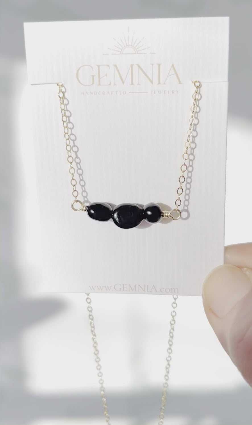 Triple Black Tourmaline Necklace in Gold Filled or Sterling Silver